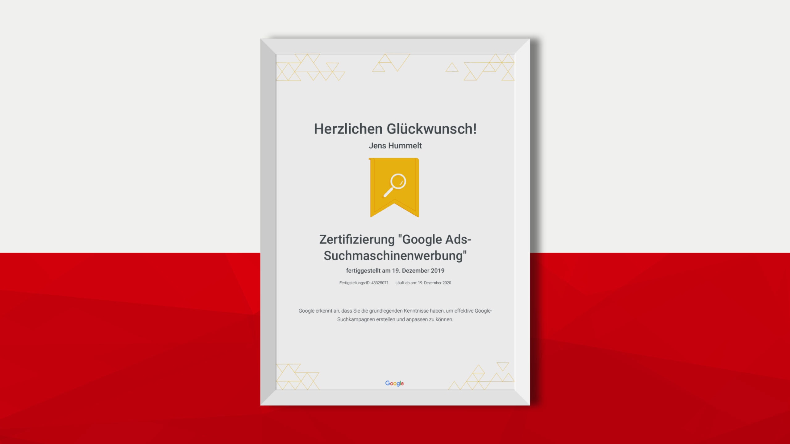 Wir haben unsere Online-Marketing-Kompetenzen erweitert und die Zertifizierung „Google Ads-Suchmaschinenwerbung“ erhalten.