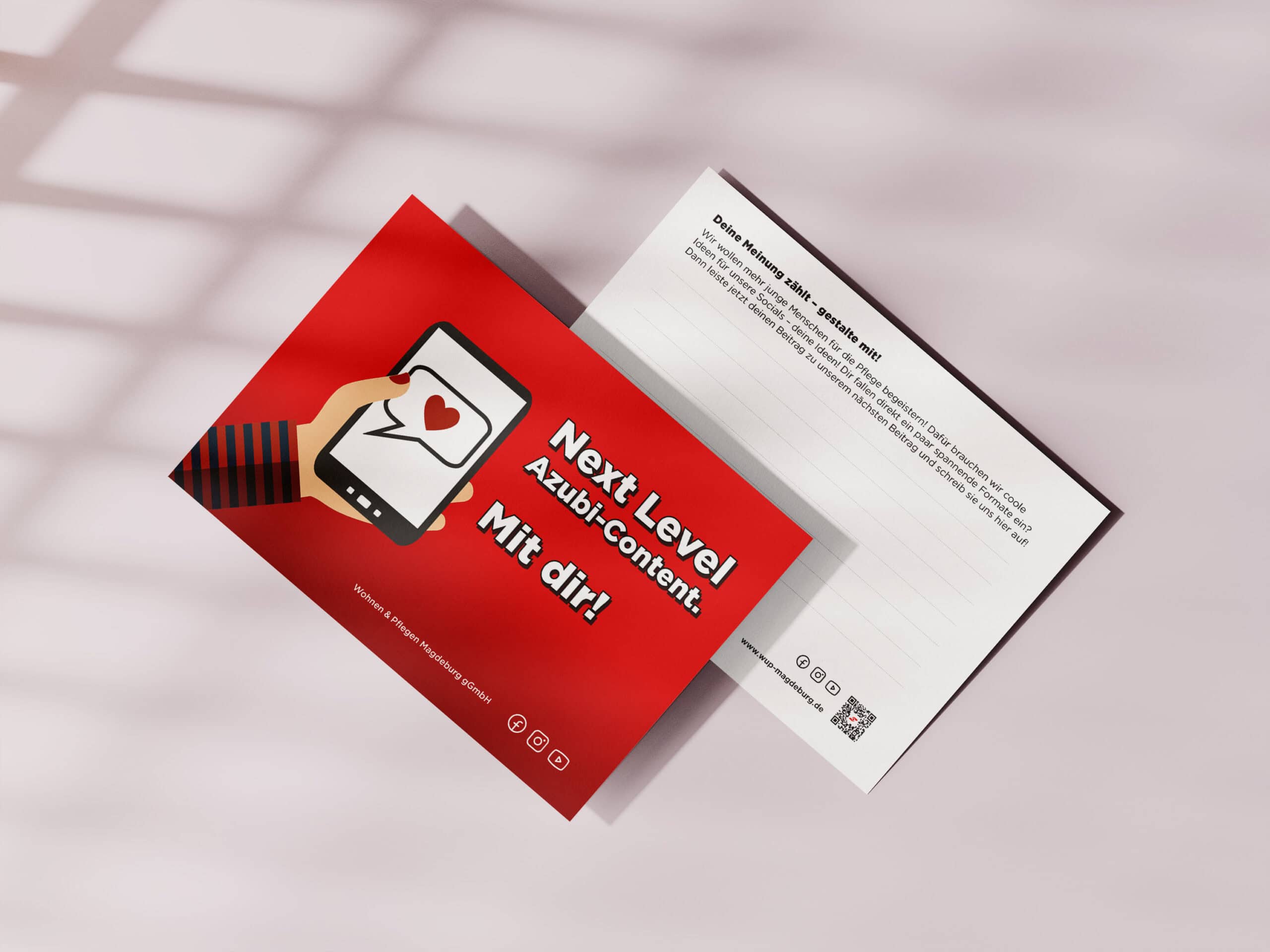 An uns trat die WUP mit dem Wunsch heran, ihre öffentliche Sichtbarkeit nachhaltig zu stärken. Zu diesem Zweck entwickelten wir für die gGmbH eine umfangreiche, mehrjährige Marketing-Kampagne, in deren Rahmen wir zahlreiche öffentlichkeitswirksame Werbemaßnahmen (wie z.B. Außen- und Printwerbung, QR-gestützte Online-Anzeigen, einen Web-Relaunch und sogar Werbeveranstaltungen) vorkonzipiert haben.